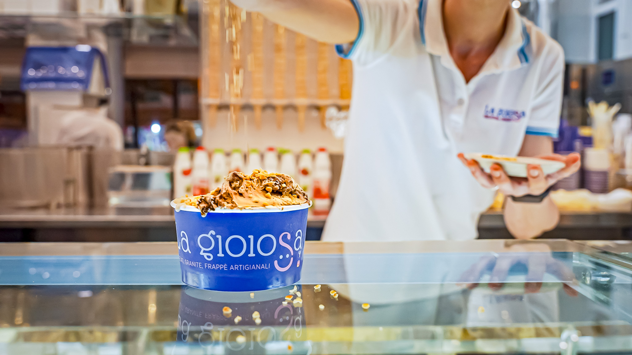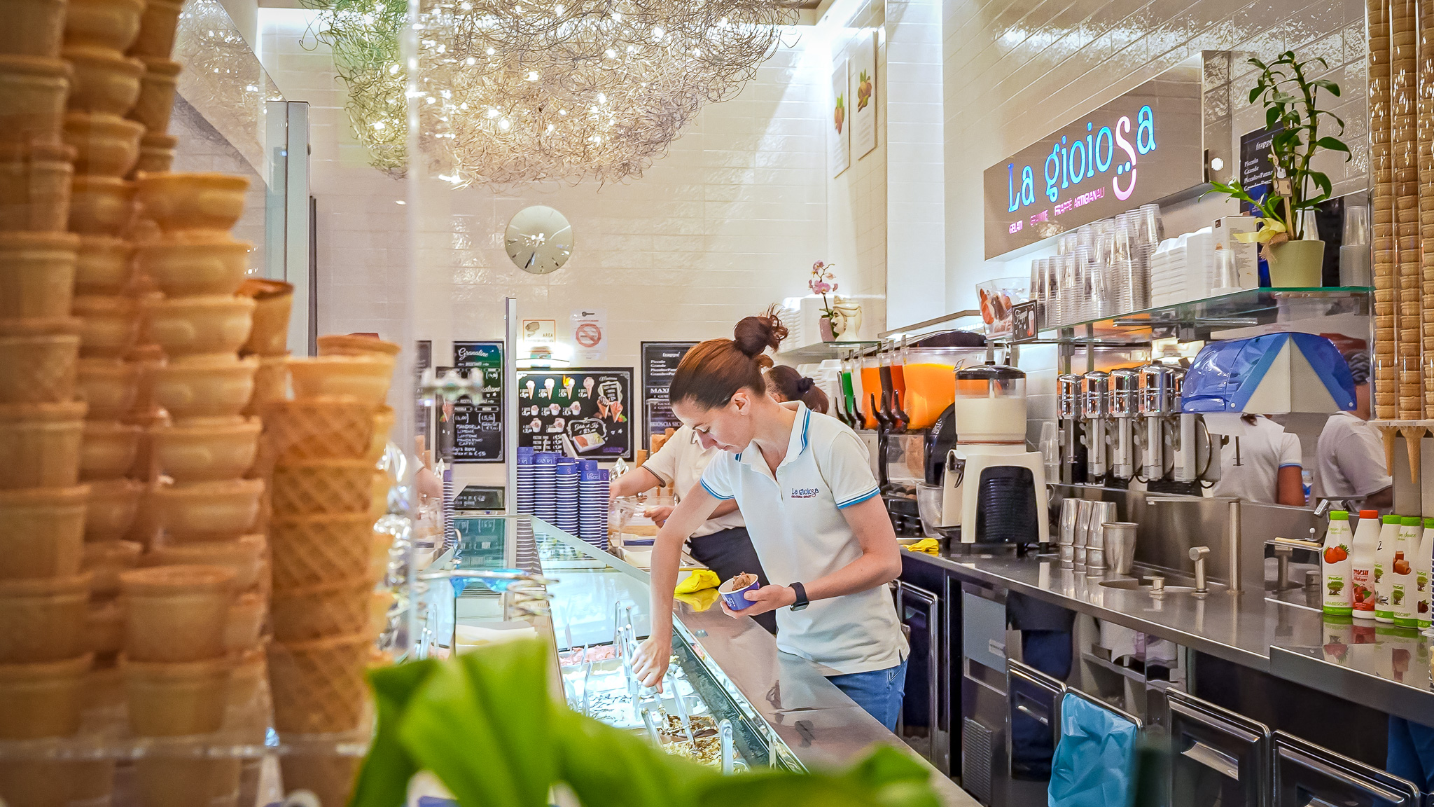 Das Team erfahrener Eismacher kreiert täglich frisches und unverfälschtes Eis, für das ausschließlich frisches Obst und Püree von hoher Qualität und ohne künstliche Farb-, Konservierungs- und Aromastoffe verwendet wird. Zu den beliebten Spezialitäten gehören eine große Auswahl an natürlichen, hausgemachten Eissorten , Milchshakes, sizilianische Granitas und sizilianische Brioscia mit Eis, die man beim Flanieren oder auf einer gemütlichen Bank im Freien genießen kann. La Gioiosa ist nicht nur für seine klassischen Eissorten und innovativen Kreationen bekannt, sondern auch für sein Angebot für alle: Zöliakiekranke, Vegetarier, Veganer und sogar Menschen, die eine laktosefreie Diät einhalten müssen.