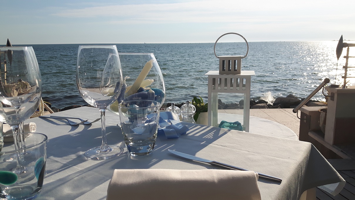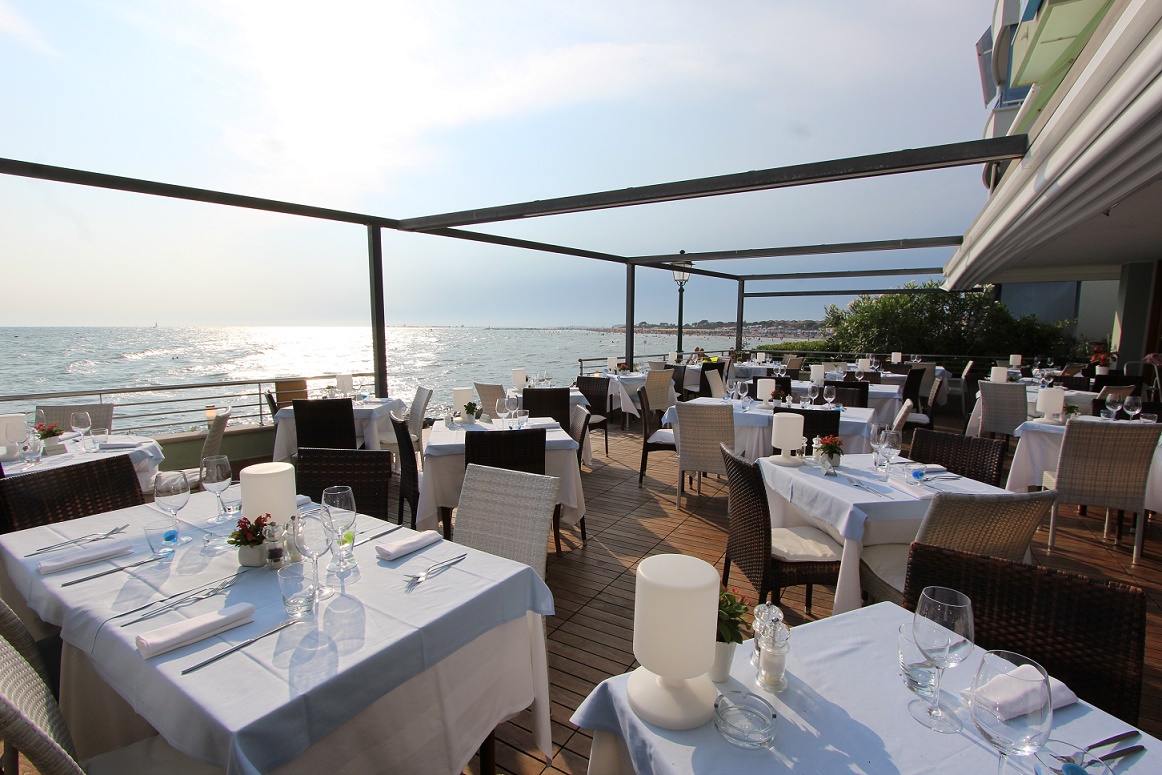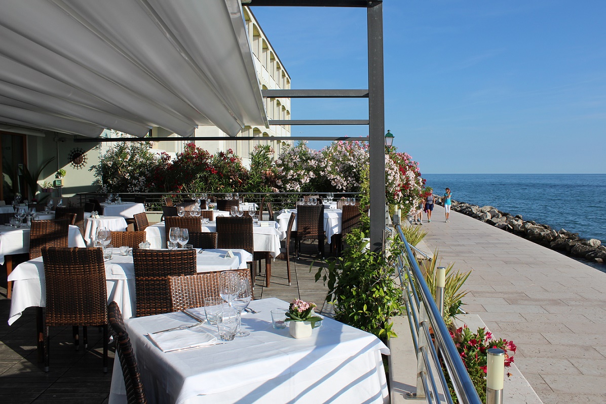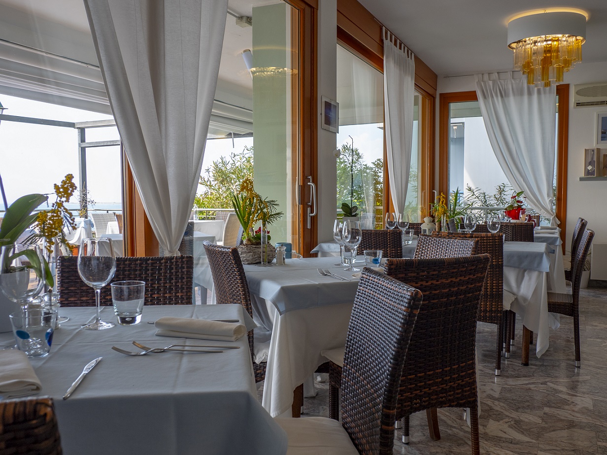 Wunderschöne Panoramaterrasse direkt am Meer, gemütlicher und einladender Speisesaal, typische Gerichte der Tradition von Grado auf Fischbasis, freundliches und kompetentes Personal. Das Restaurant des Hotel Marea ist direkt von der Strandpromenade aus zugänglich und steht auch denjenigen offen, die keine Hotelgäste sind.