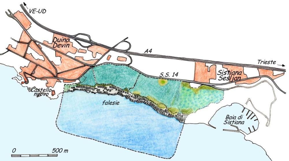 Das 1996 gegründete Duino Cliffs Naturschutzgebiet erstreckt sich über 107 Hektar in einem begrenzten Gebiet, in dem man den Übergang vom durchschnittlichen europäischen zum mediterranen biogeographischen Gebiet mit einem hohen Grad an Biodiversität beobachten kann; die typische Flora dieses Gebietes umfasst Schwarzkiefern, Steineichen, Hainbuchen, Kaninkirschbäume und kartschianische Centaurea, eine endemische Pflanze mit rosa-violetten Blüten. Die Fauna besteht aus Reptilien (Eidechsen, Vipern und Schlangen), einsamen Sperling, Möwe, Wanderfalke und Rabe.