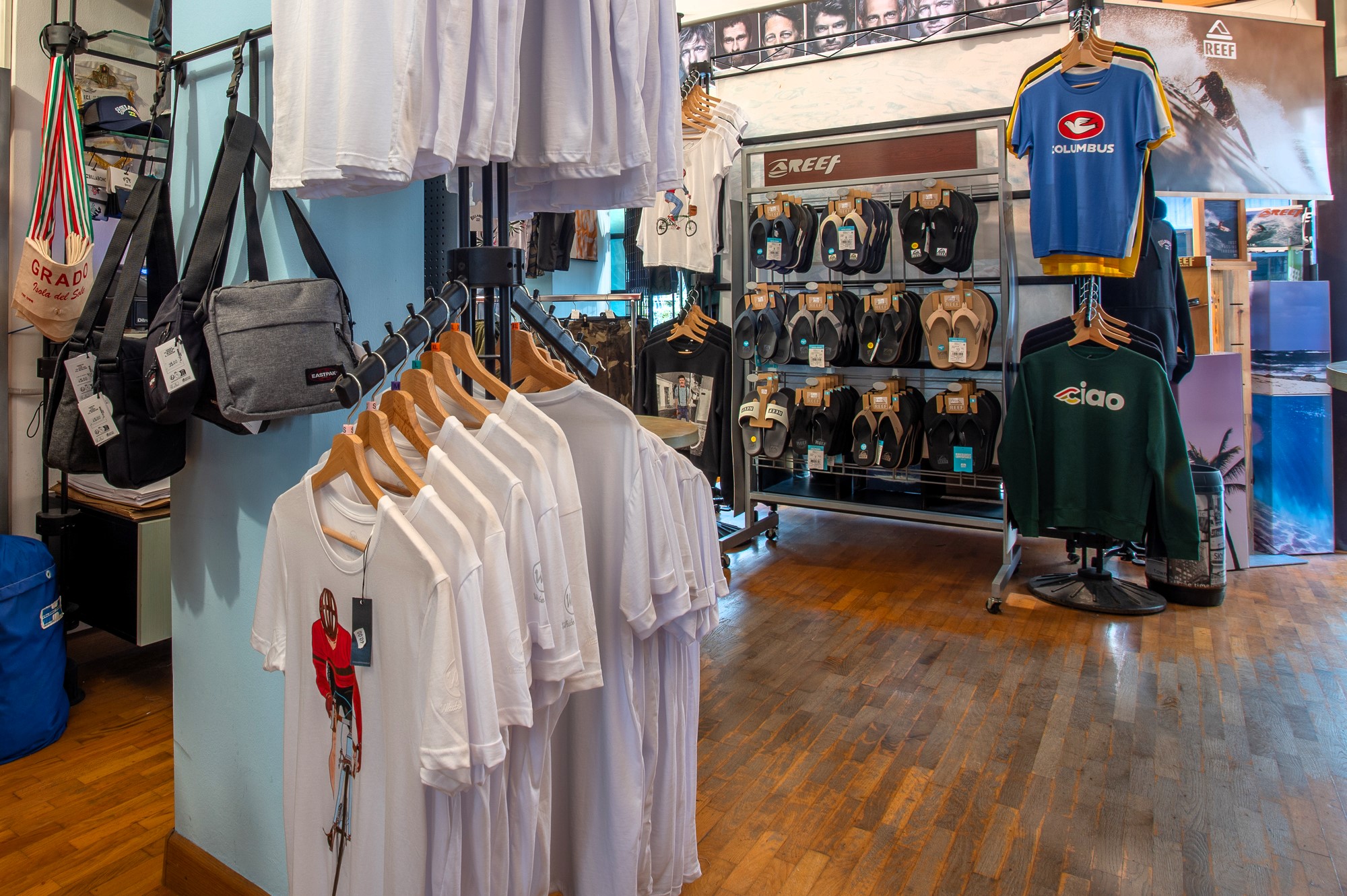 Nonsolovela ist ein kleines Sportgeschäft in der Fußgängerzone von Grado, das sich auf Radsport, Radtourismus und Surfausrüstung spezialisiert hat. Das gemütliche Geschäft zeichnet sich durch sein sorgfältig ausgewähltes Sortiment aus, das von Bekleidung über neues Fahrradzubehör bis hin zu hochwertigen Surfbrettern reicht und sowohl Outdoor-Sportler als auch Liebhaber von Design und Funktionalität zufriedenstellt.