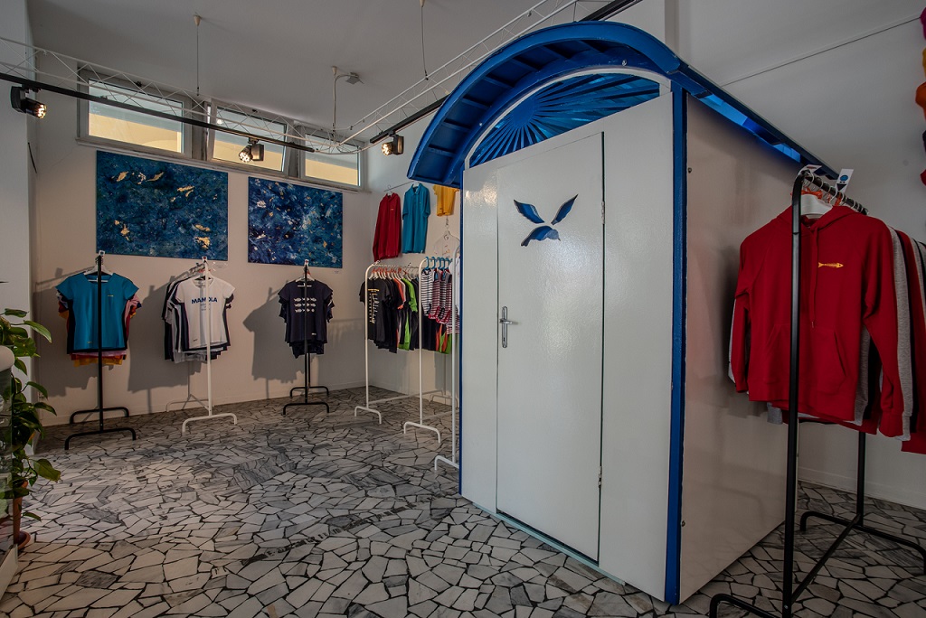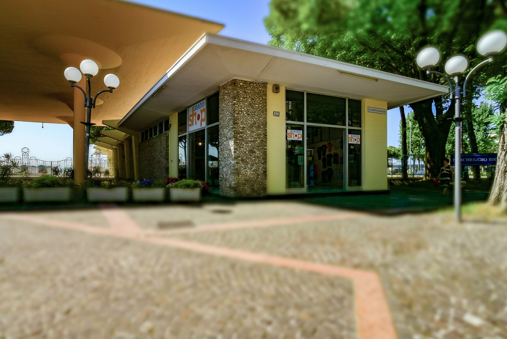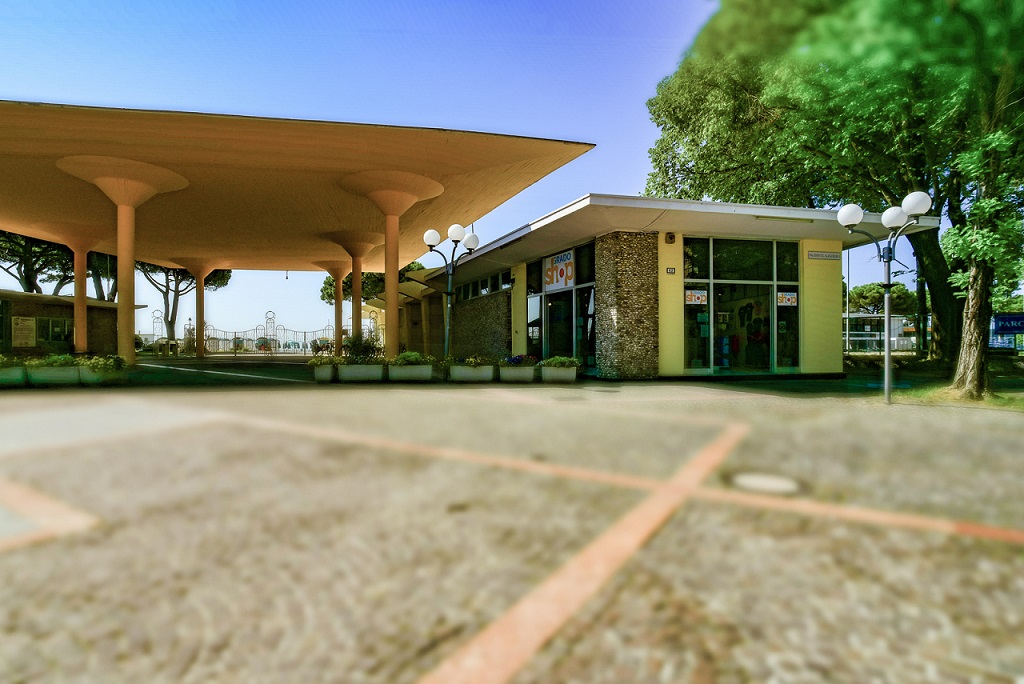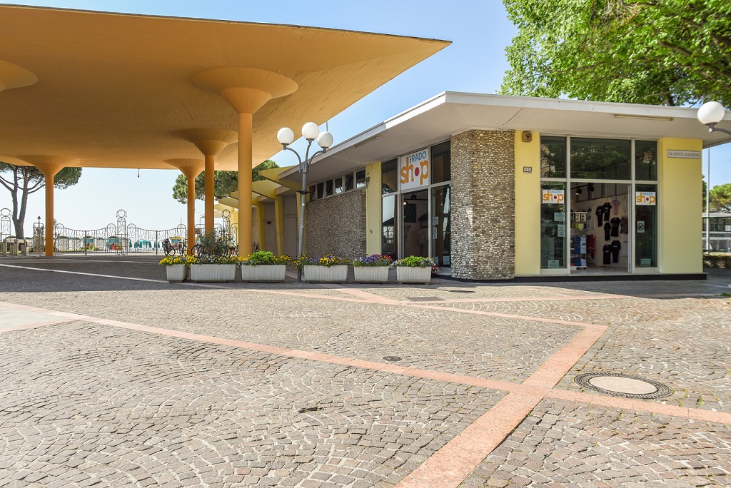 Nehmen Sie ein Souvenir von der Sonneninsel mit nach Hause: Gadgets, Kleidung und Geschenkartikel, inspiriert von einem einheimischen Künstler und dem Dialekt von Grado; Haupteingang zum Strand GIT.