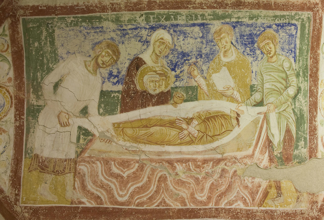 Unter der Kirche gibt es zwei Krypten. Die erste, im Presbyterium, ist mit byzantinischen Fresken aus dem 12. Jahrhundert bedeckt (der bedeutendste Zyklus romanischer Fresken in Norditalien). Auf dem Gewölbe erzählen neunzehn Szenen mit den Geschichten der Ermacora von den Anfängen des Christentums in Aquileia.