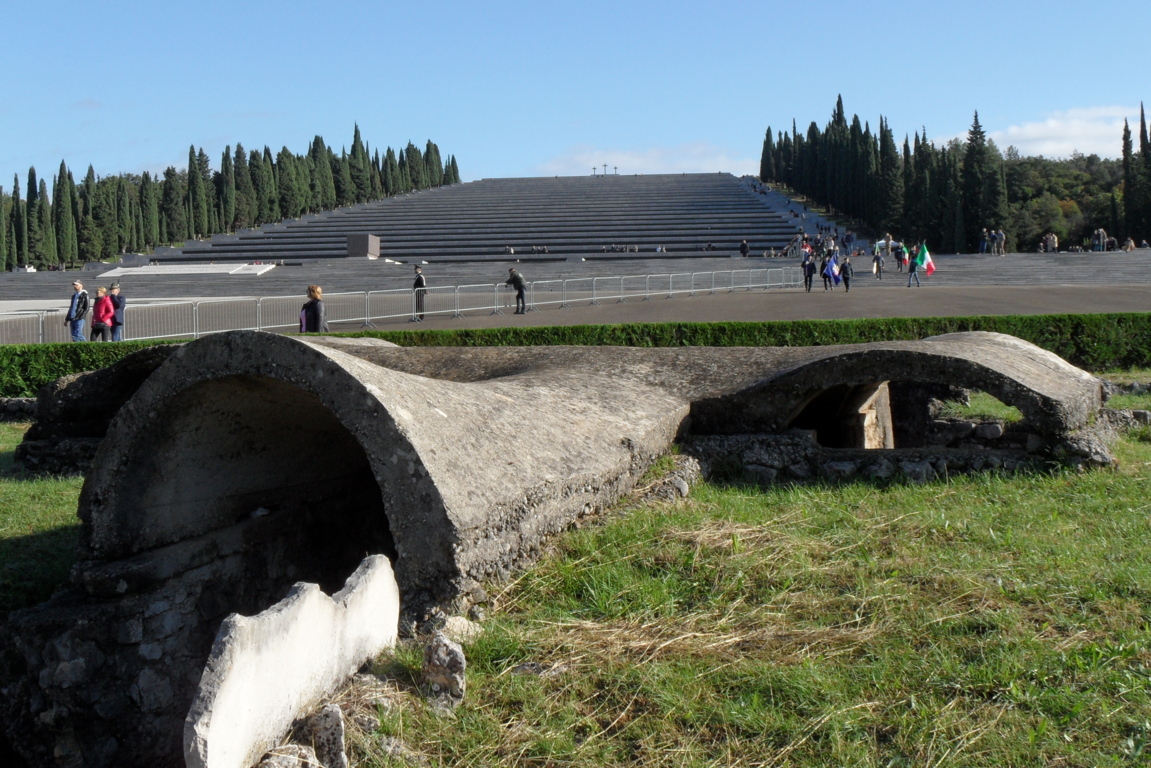 Durch das imposante Denkmal, das Werk des Architekten Giovanni Greppi und des Bildhauers Giannino Castiglioni, kann man eine Route zwischen Schützengräben und historischen Erinnerungen beginnen, zu der auch der österreichisch-ungarische Friedhof gehört, auf dem 14.550 Soldaten ruhen, und die sogenannte Dolina dei Bersaglieri weil es von den gefiederten Infanteristen des 15. Bersaglieri-Regiments besetzt wurde, die ihr Abbild und einige Namen an den Wänden des Gebäudes hinterließen.