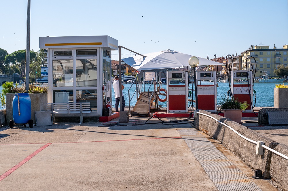 Am Kopf der Mole, entlang der Litoranea Veneta, befindet sich die einzige Tankstelle für Grado, die für die Versorgung großer Boote geeignet ist, die nicht unter der Brücke der Staatsstraße 352 durchfahren können. Im ersten Stock des Gebäudes befinden sich die Rezeption von Darsena und die Büros von Adria Ship Srl, der Handelsgesellschaft, die ausschließlich Segelboote der Marken Elan und Impression sowie Katamarane der Marken Catana und Bali für Italien importiert.