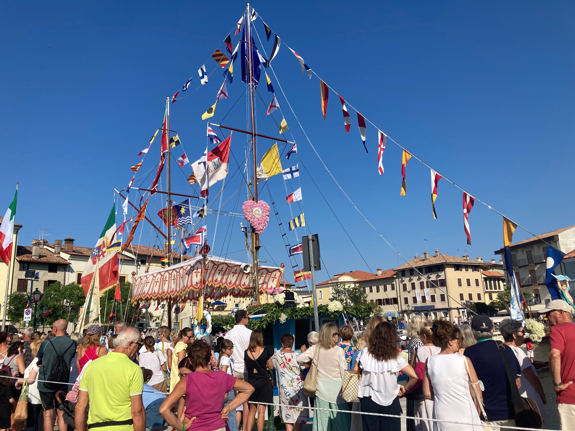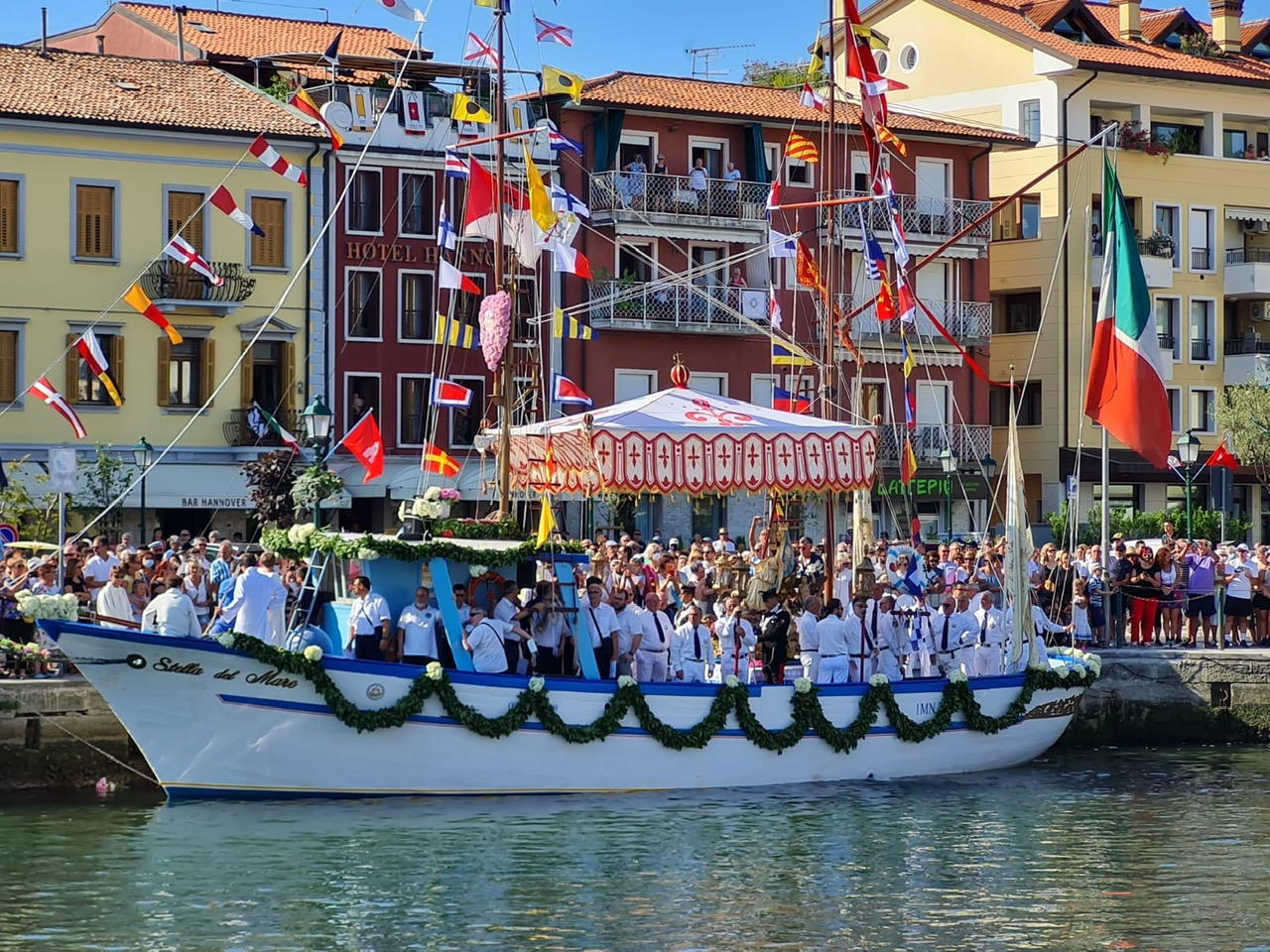 Auch heute noch zieht am ersten Julisonntag ein eindrucksvoller mit Fahnen und Girlanden geschmückter Zug von Booten in der Lagune von Grado zur Insel Barbana. Die Prozession von Barbana übers Meer beginnt früh am Morgen und wird von der „Stella del Mare“ (dt. Seestern) angeführt, dem Boot, das die Statue der Madonna degli Angeli transportiert, die normalerweise in der Basilika Sant’Eufemia steht.