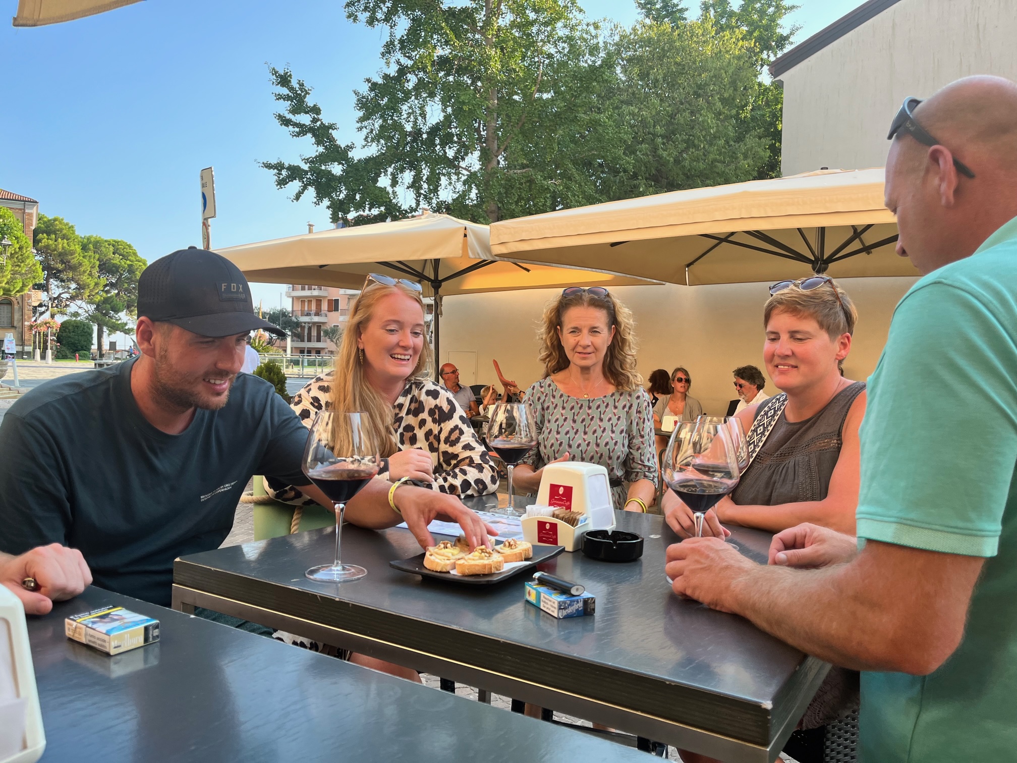17.25 Uhr - Verkostung von Pinot Grigio, “aX”, Orzan Ivaldo, begleitet von einem Canapè mit Kabeljau-Mousse, in der Osteria da Filomena;