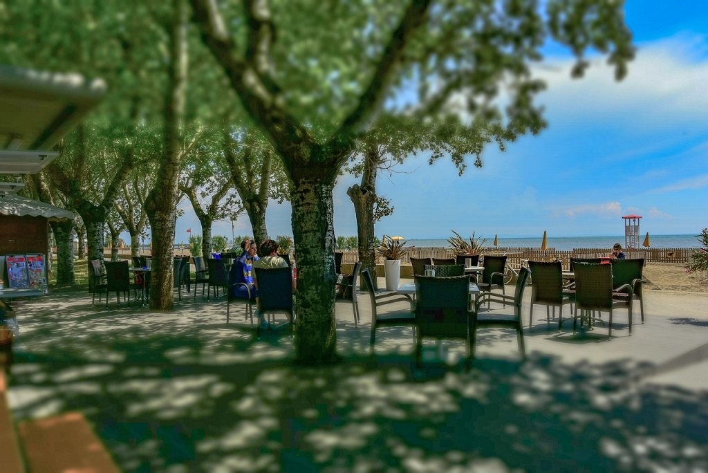 Ampio American Bar sulla spiaggia del Lido di Fido con cucina locale e un menu per gli amici a quattro zampe.