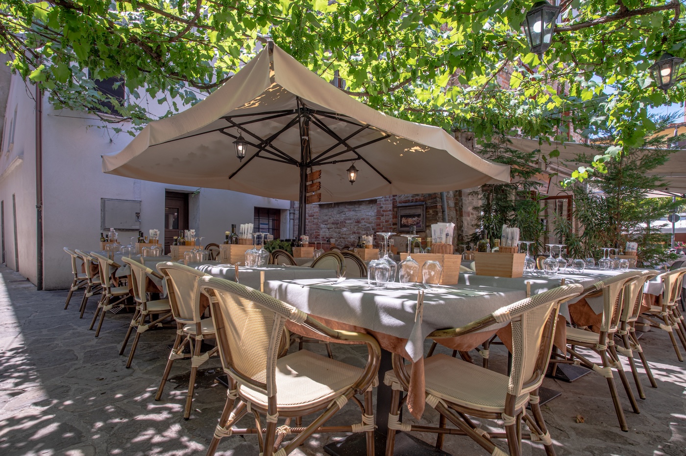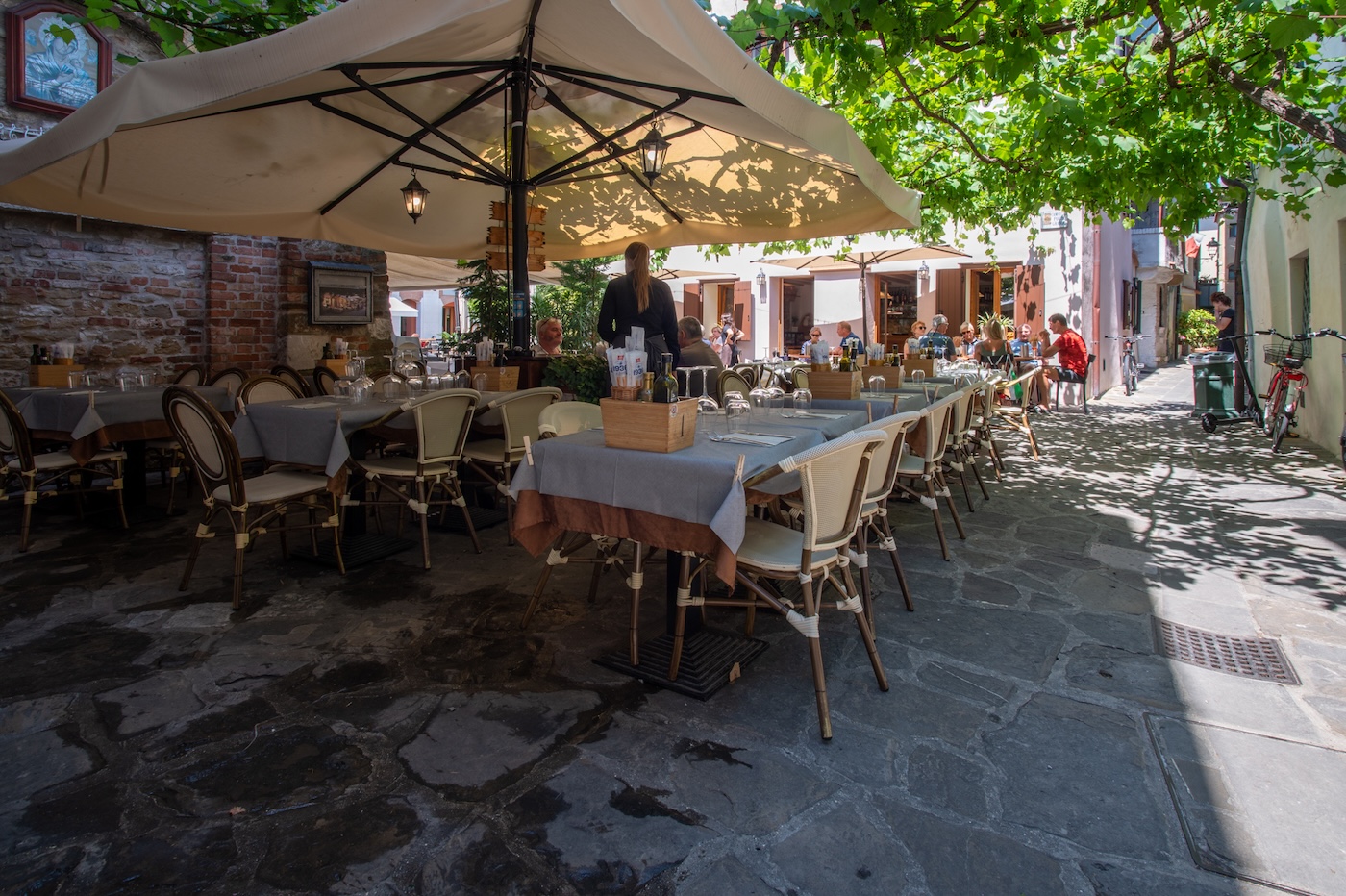 Uno dei gioielli nascosti del locale è il suo incantevole giardino interno, situato su una delle tipiche piazzette del centro storico. Questo spazio verde, un'oasi di tranquillità lontano dalla frenesia quotidiana, offre ai visitatori la possibilità di godere dei propri pasti all'aperto, avvolti da un'atmosfera serena e rilassante, con una vista suggestiva sulle antiche architetture di Grado.