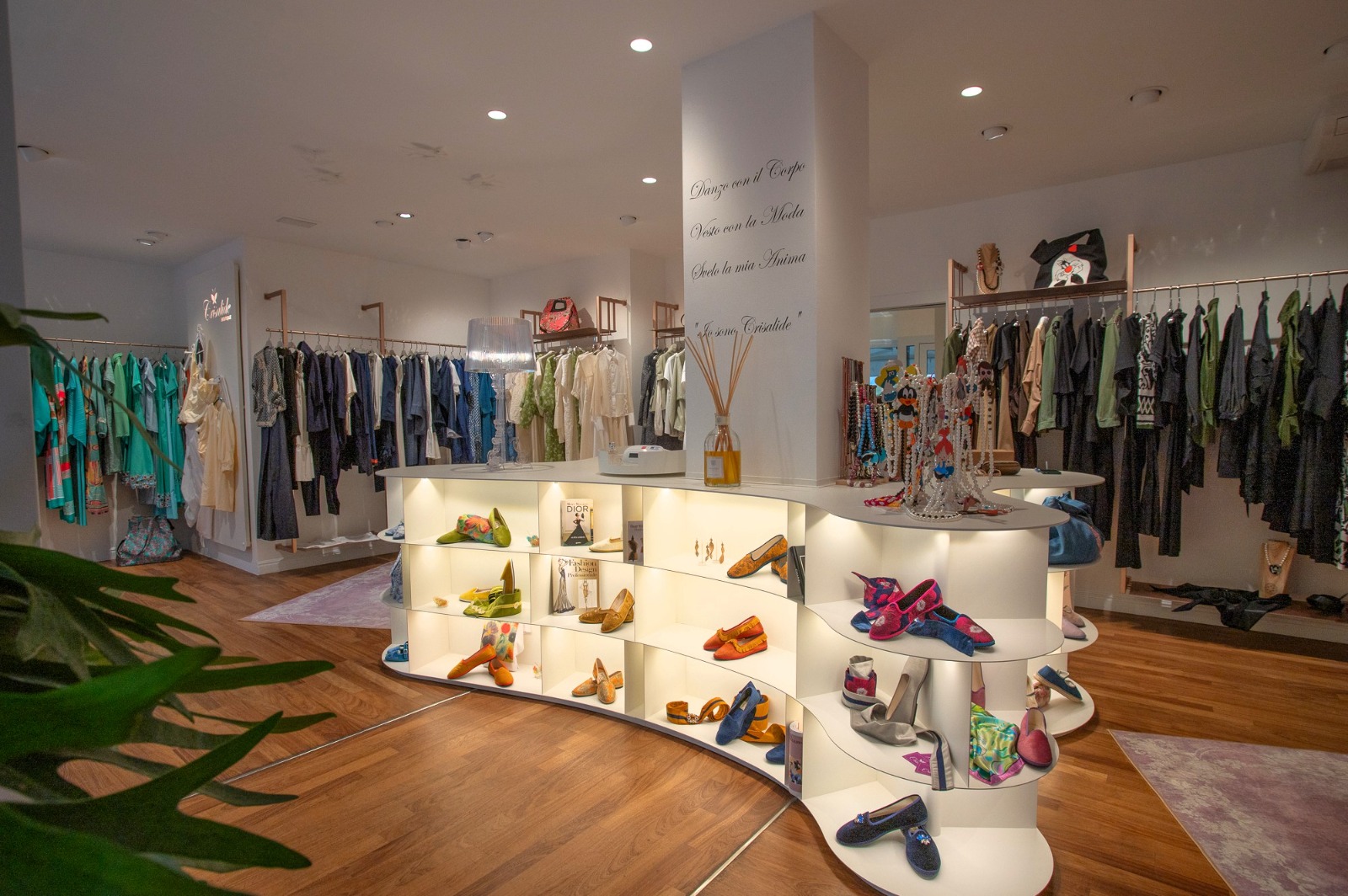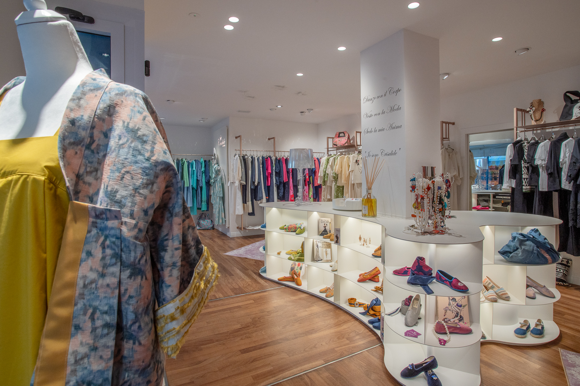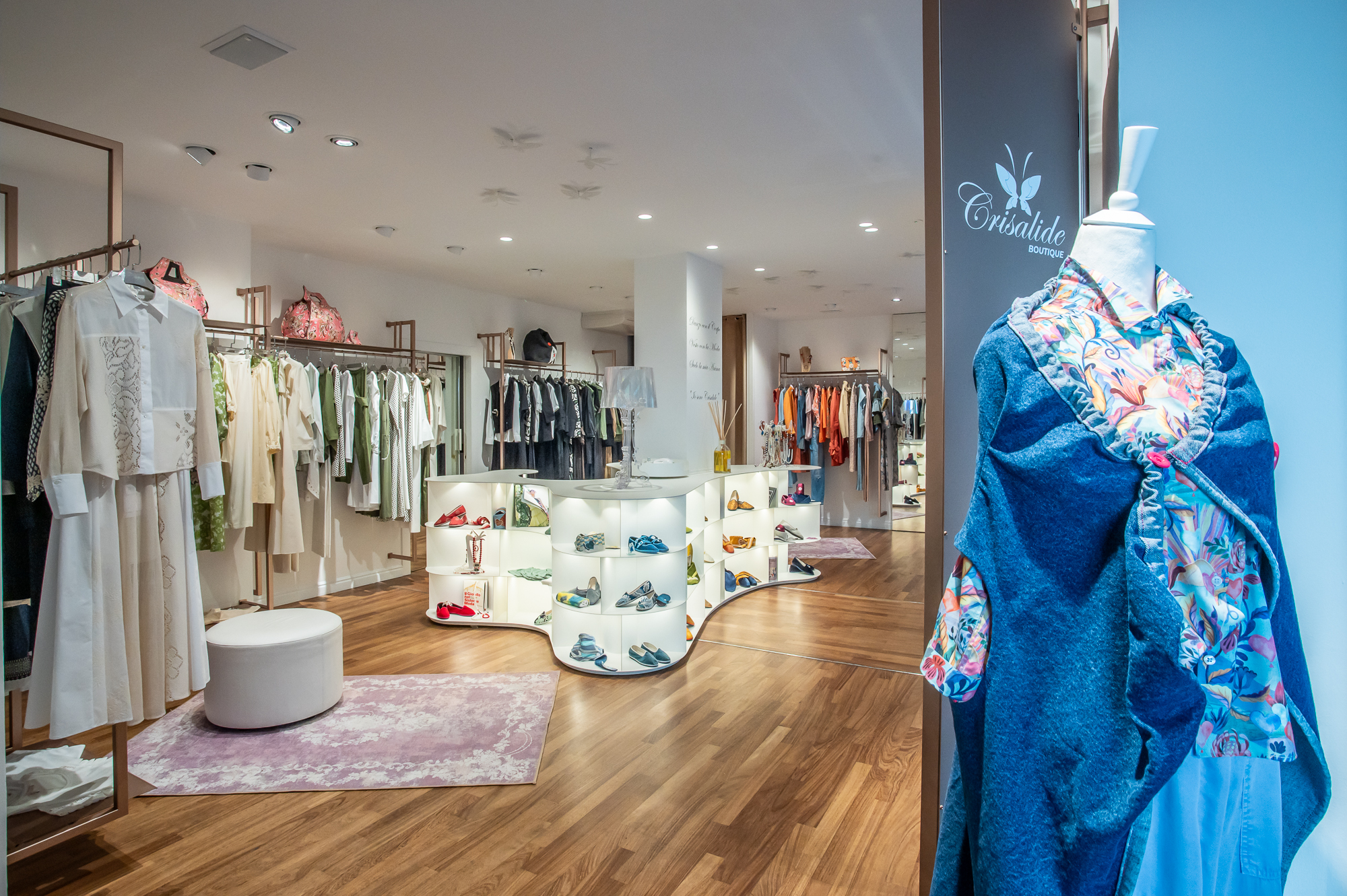 In boutique si trovano collezioni sartoriali e creazioni in edizione limitata firmate Shi’s by Crisalide, una linea pensata per donne dalla taglia 38 alla 52, che desiderano vestire con stile, versatilità ed eleganza.