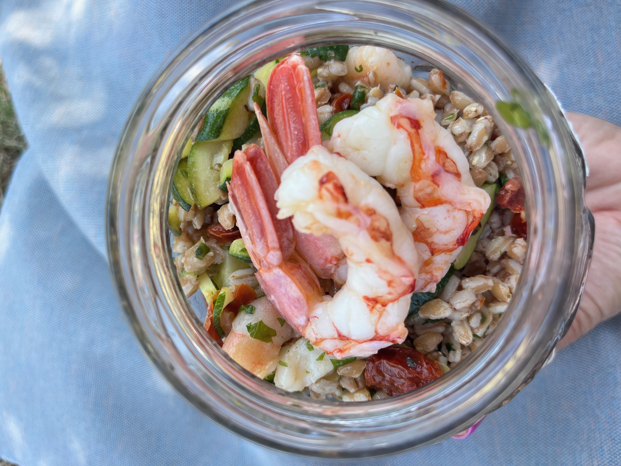 - Vasetti di farro con mazzancolle, zucchine e menta;