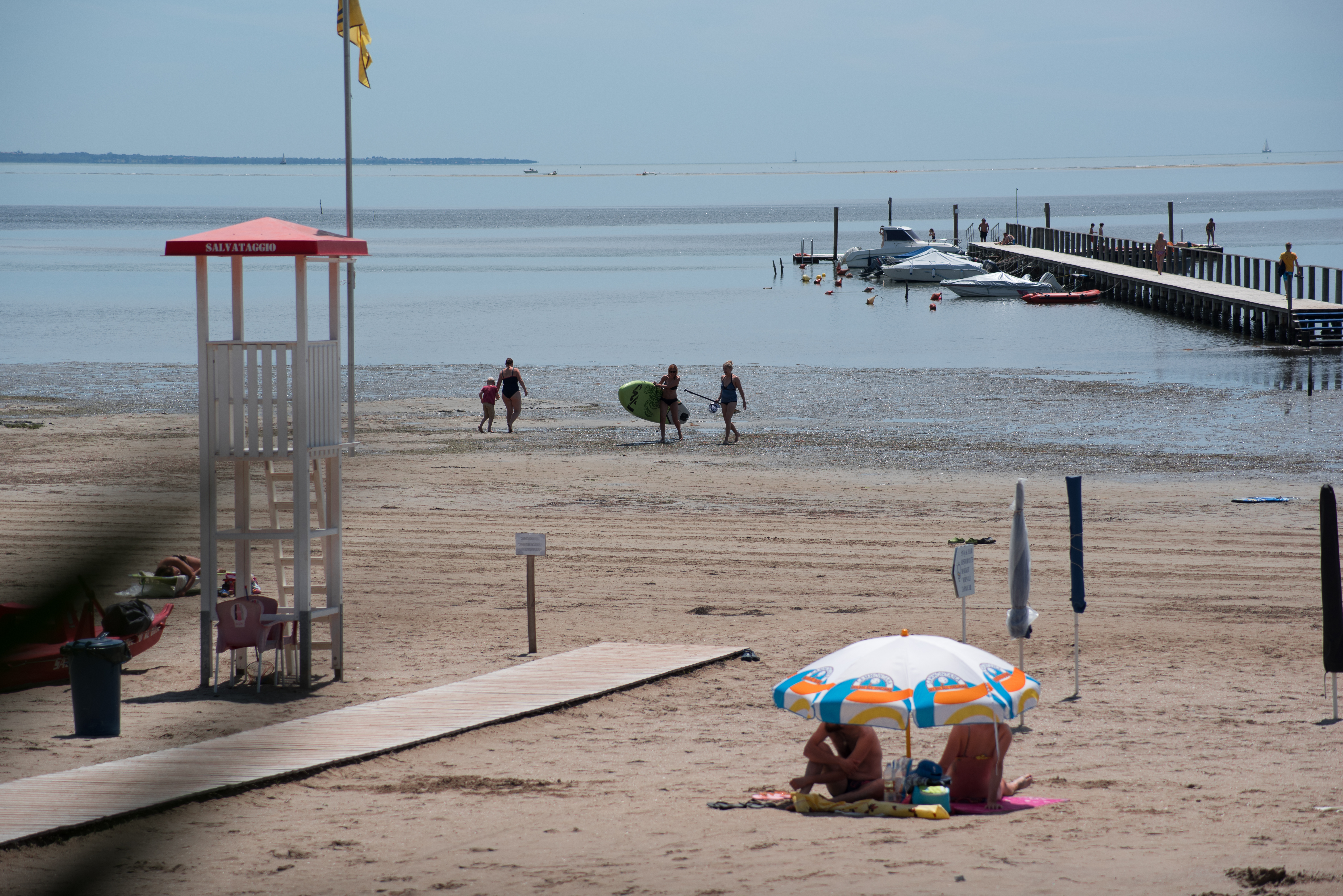 Il fondale qui è piuttosto basso, ideale per la sicurezza dei bambini, e per una bella nuotata ci si deve allontanare dalla riva e superare i banchi di sabbia. Per la maggior parte è una spiaggia in concessione al Campeggio al Bosco ma è aperta anche agli esterni e l’ingresso pedonale è gratuito.