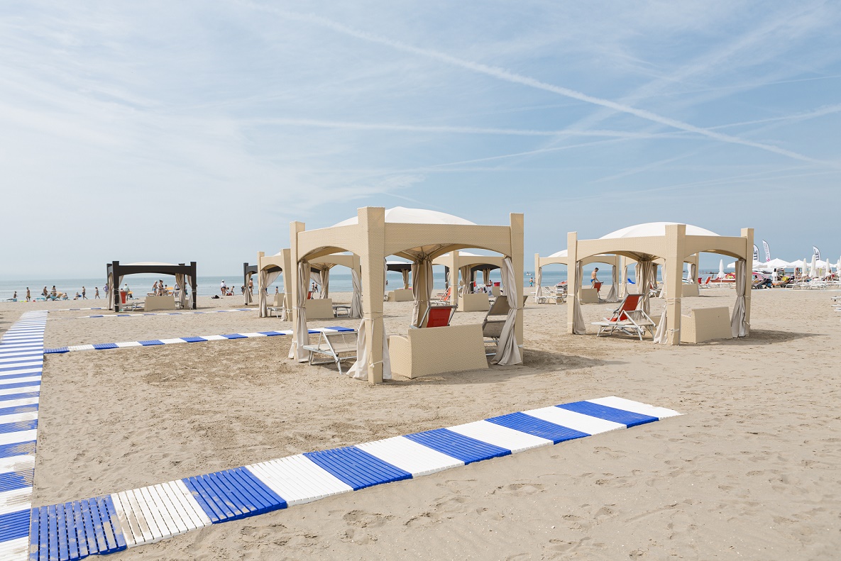 Sono presenti otto ingressi che delimitano i vari settori, ognuno dedicato a uno specifico target: il Settimo Cielo, ovvero la zona vip con gli ampi gazebo, il Bagno Imperiale, la spiaggia Classic, la spiaggia di Sissi, il settore Spiaggia Levante, la Baby beach con svariati servizi per i più piccoli, il settore Gazebo/pavillon, la Family beach, il settore spiaggia Smart e il Lido di Fido, per le vacanze al mare con gli amici a 4 zampe. Completano l’offerta dello stabilimento GIT un ampio parcheggio sul retro spiaggia del 7° ingresso, eventi culturali al Velarium e animazione gratuita per grandi e piccini. Grande attenzione è dedicata all’ecosostenibilità e alle persone diversamente abili grazie a piazzole dedicate, passerelle e sedie JOB disponibili gratuitamente e bar in spiaggia privi di barriere architettoniche.