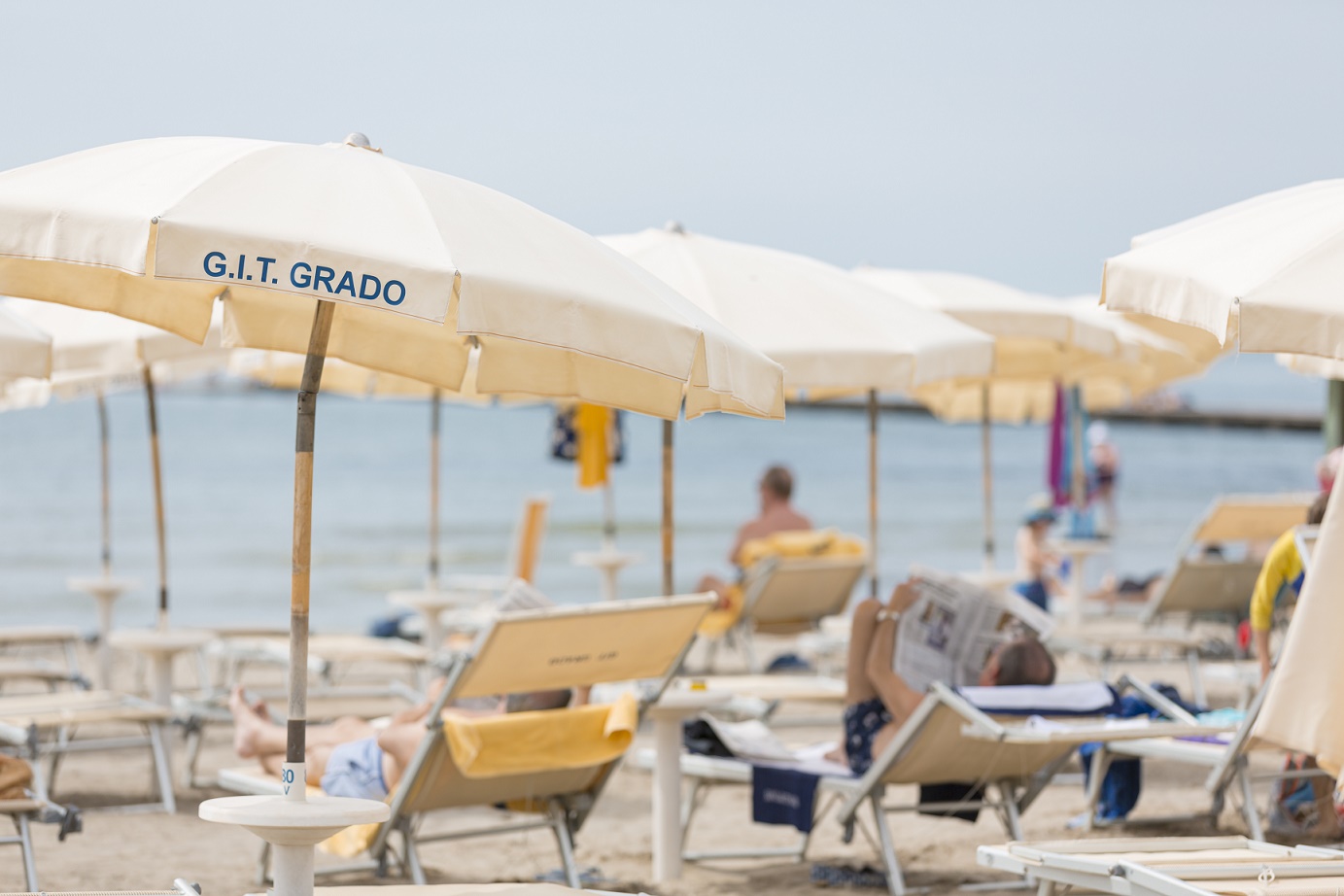Gestita dalla Grado Impianti Turistici Spa, la Spiaggia Principale GIT è una magnifica distesa dorata che si estende per quasi due chilometri; curata e controllata con ingresso a pagamento (consuetudine inaugurata ai tempi dell’Impero asburgico) questa spiaggia comprende parchi giochi, ristoranti (Antiche Terme, Aquamarina, Top Bar, Numero Uno) chioschi, aree verdi, campi da gioco, spogliatoi, copertura Wi-Fi e numerosi altri servizi.