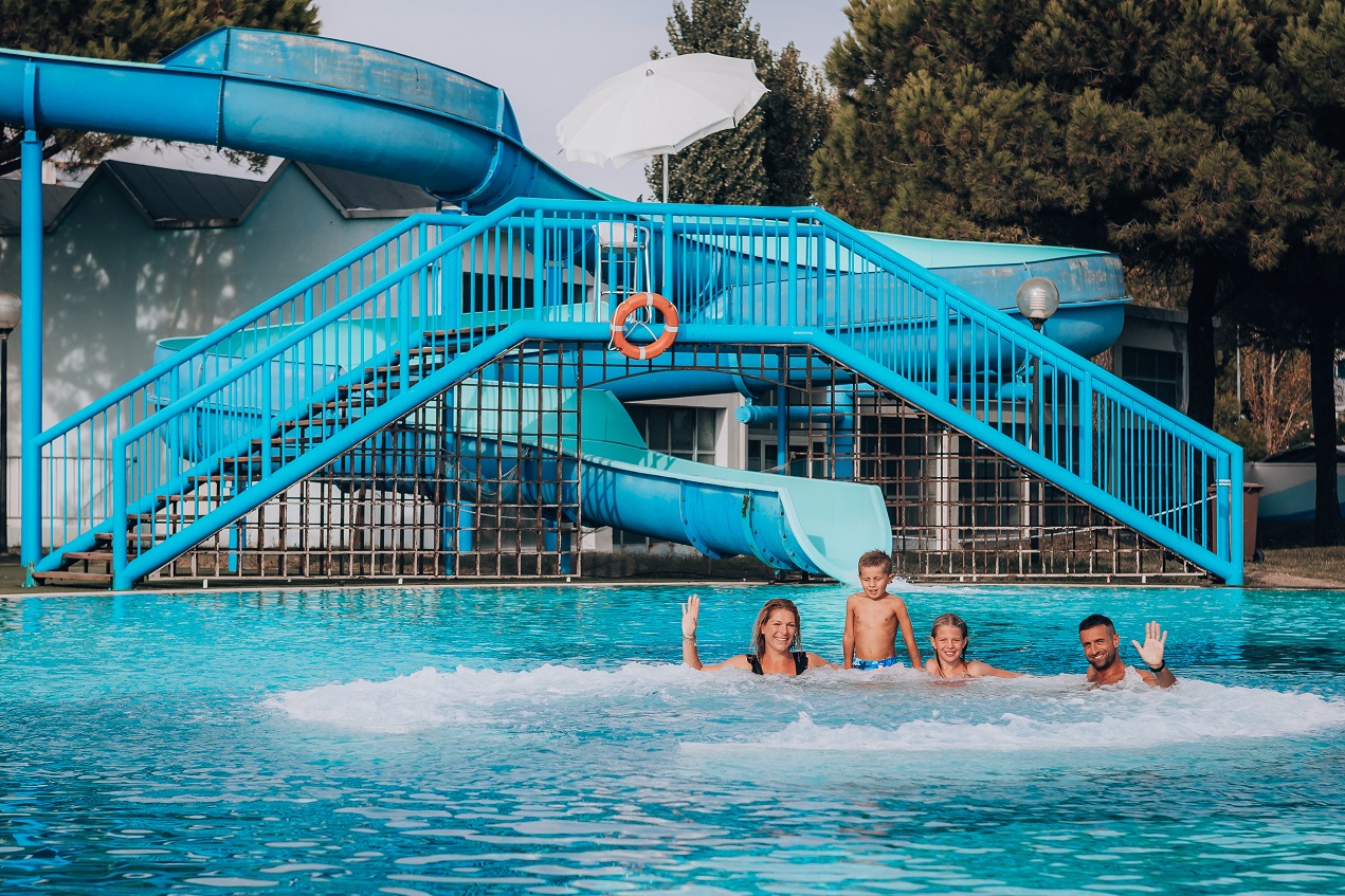 Il Parco Acquatico è un parco a misura di famiglia: giochi e scivoli per i bimbi, idromassaggi per le mamme, zona nuoto e trampolini per i più atletici.